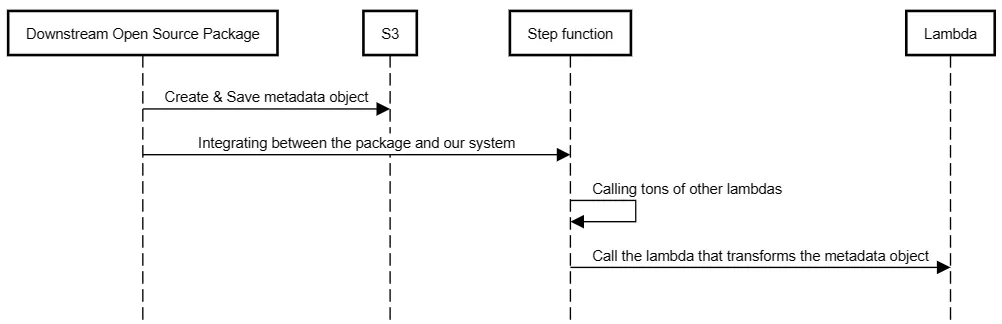 Essentially, between creating the metadata object in the downstream package, and transforming it in the lambda, there were tons of other lambdas that were invoked.